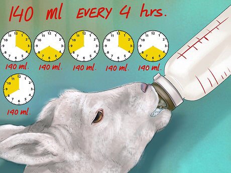 ألى ١٤٠ ملليلتر كل اربع ساعات بعد مرور اسبوعين يمكنك زيادة الكميه تدريجياً ، لاتنسى تسخين بديل الحليب الصناعي حتى يكون دافئاً عند اللمس