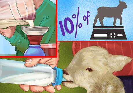 يحتاج الحملان ألى اللبأ ١٠ ٪ من وزنهم خلال ٢٤ ساعة الأولى ومن الجيد أن يكون متوفر اللبأ البديل عندك عندما تكون قد تخلت عنهم والدتهم