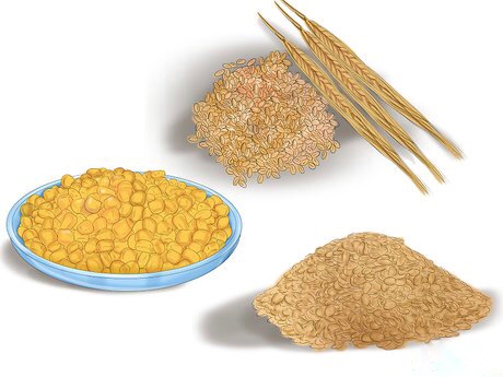 بأن يكون ١٠٪ من وزن الماعز القزم ، وعناصر الحبوب الذرة والشعير والشوفان والوقت الأساسي لوجبة الحبوب تكون في فصل الشتاء في عامة التربية.
